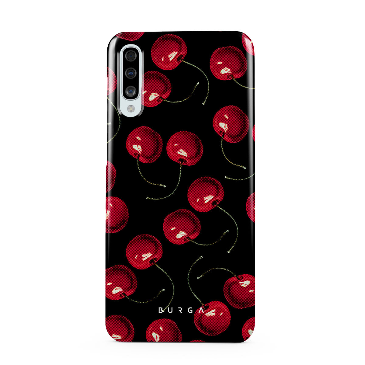 On a deep black background, rich red cherries stand out. Tempting and audacious, our Cherrybomb Samsung Galaxy A50 phone case design is perfect for anyone who likes to keep things simple yet striking.