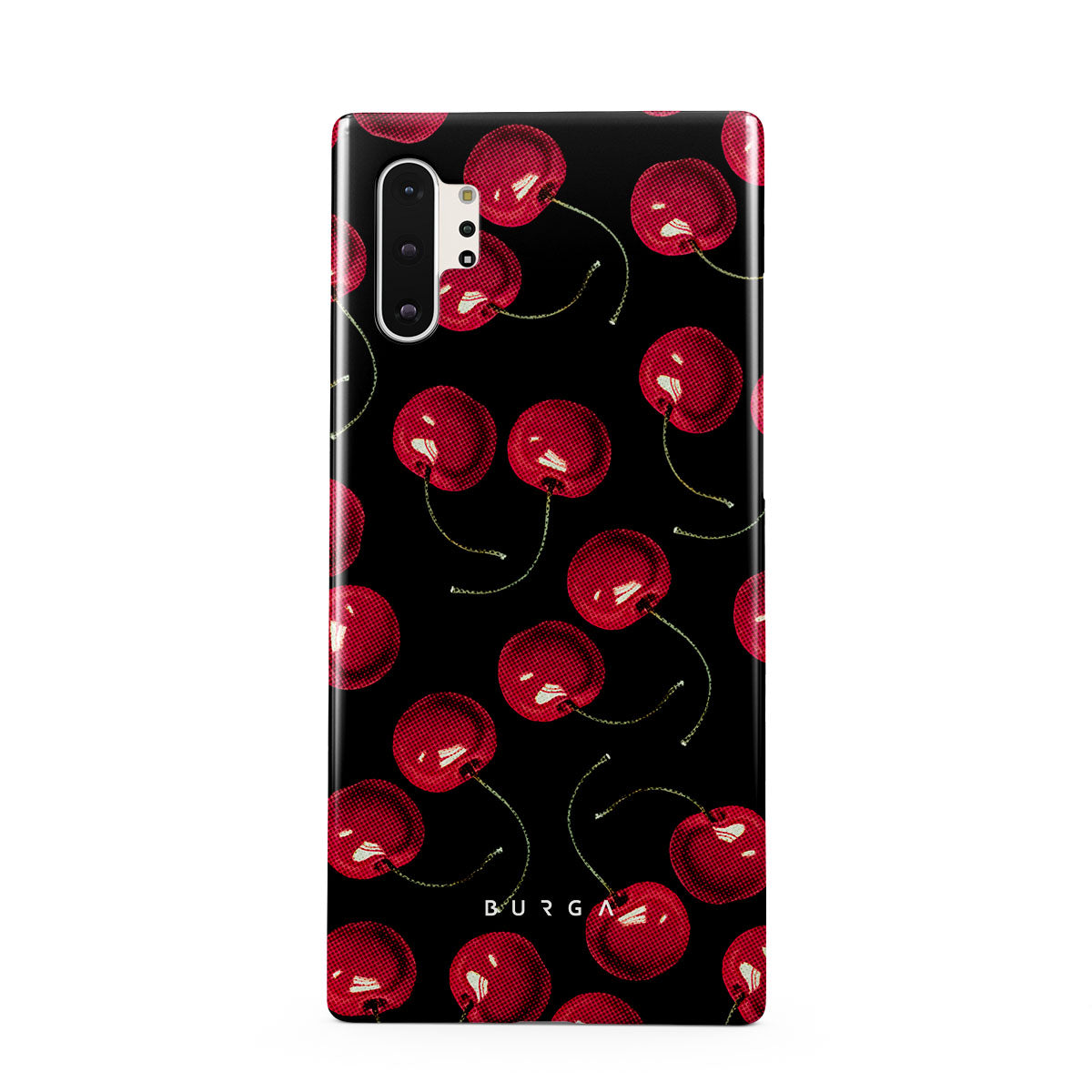 On a deep black background, rich red cherries stand out. Tempting and audacious, our Cherrybomb Samsung Galaxy Note 10 Plus phone case design is perfect for anyone who likes to keep things simple yet striking.