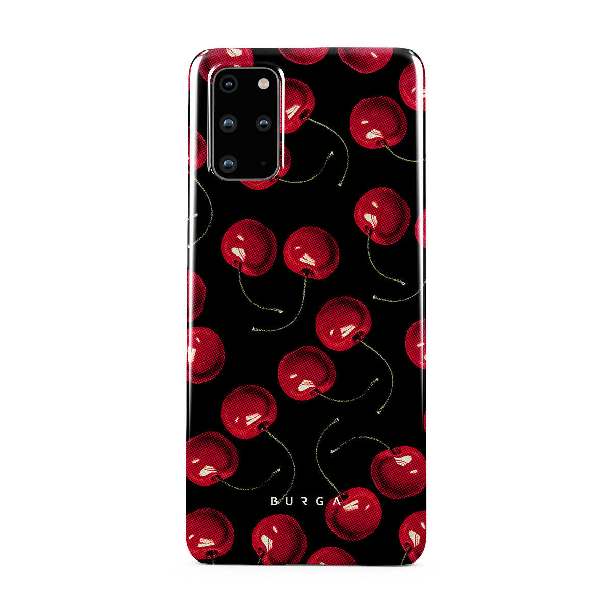 On a deep black background, rich red cherries stand out. Tempting and audacious, our Cherrybomb Samsung Galaxy S20 Plus 4G / 5G phone case design is perfect for anyone who likes to keep things simple yet striking.