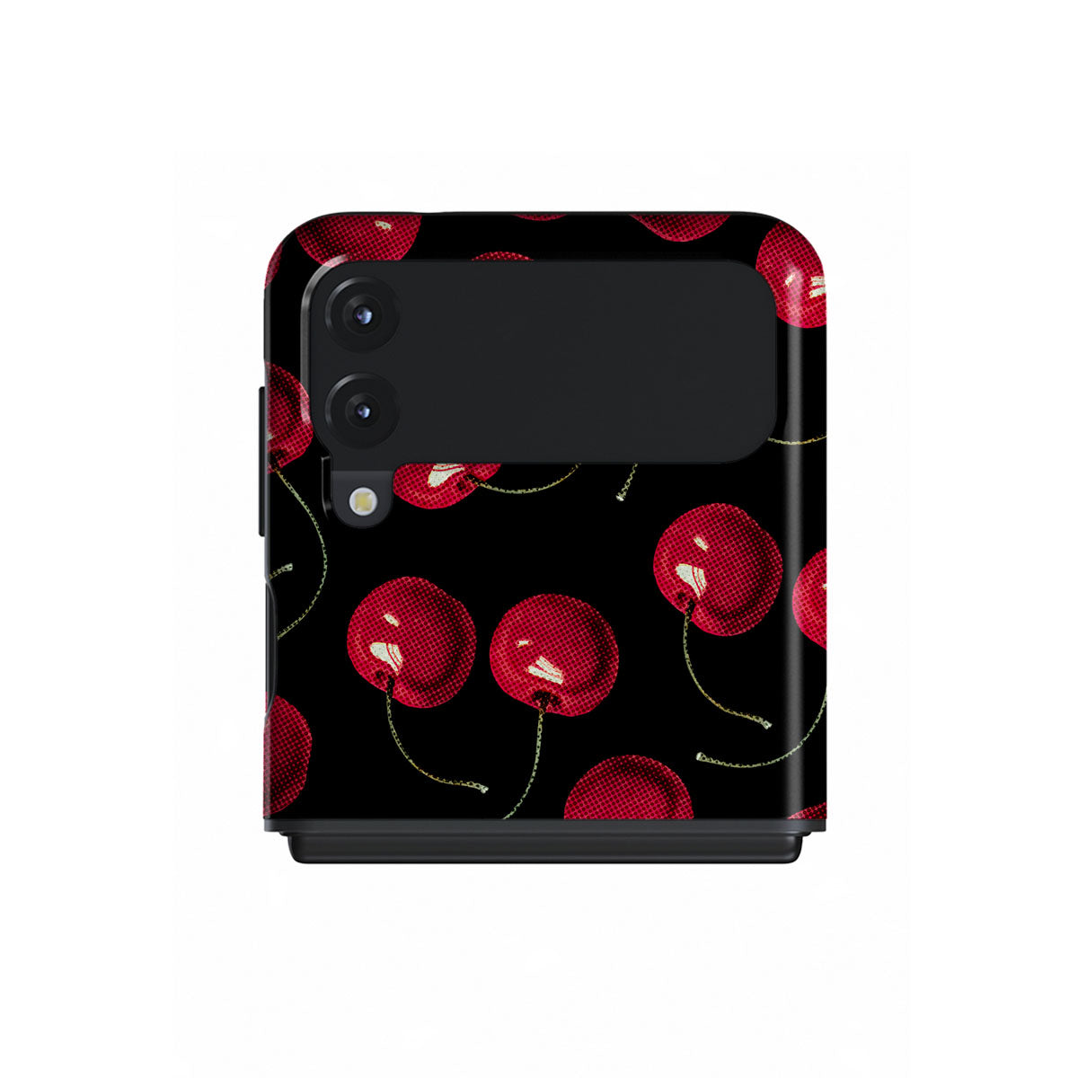 On a deep black background, rich red cherries stand out. Tempting and audacious, our Cherrybomb Samsung Galaxy Z Flip 3 phone case design is perfect for anyone who likes to keep things simple yet striking.