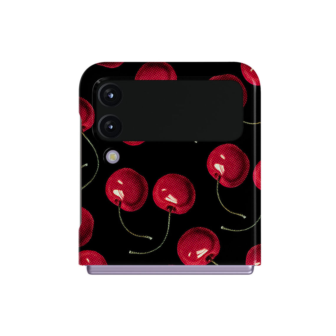 On a deep black background, rich red cherries stand out. Tempting and audacious, our Cherrybomb Samsung Galaxy Z Flip 4 phone case design is perfect for anyone who likes to keep things simple yet striking.