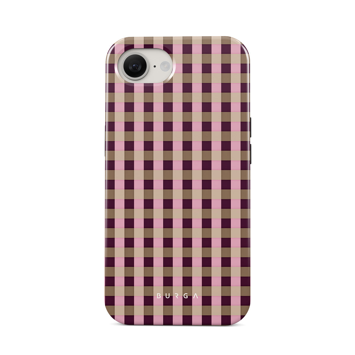 This design features: pink and burgundy plaid pattern, modern checkered style.