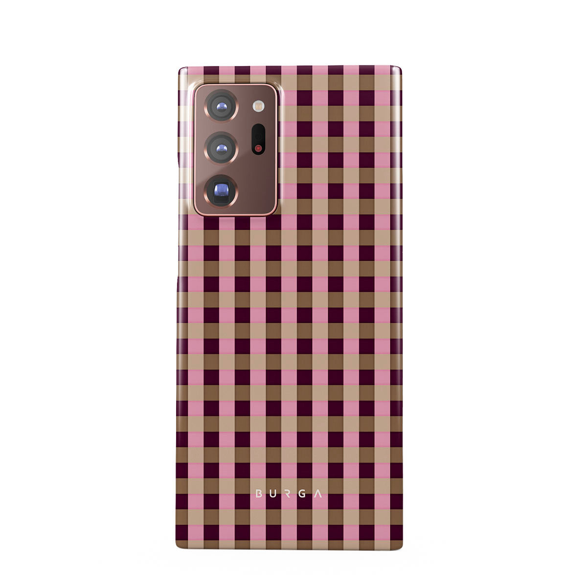This design features: pink and burgundy plaid pattern, modern checkered style.