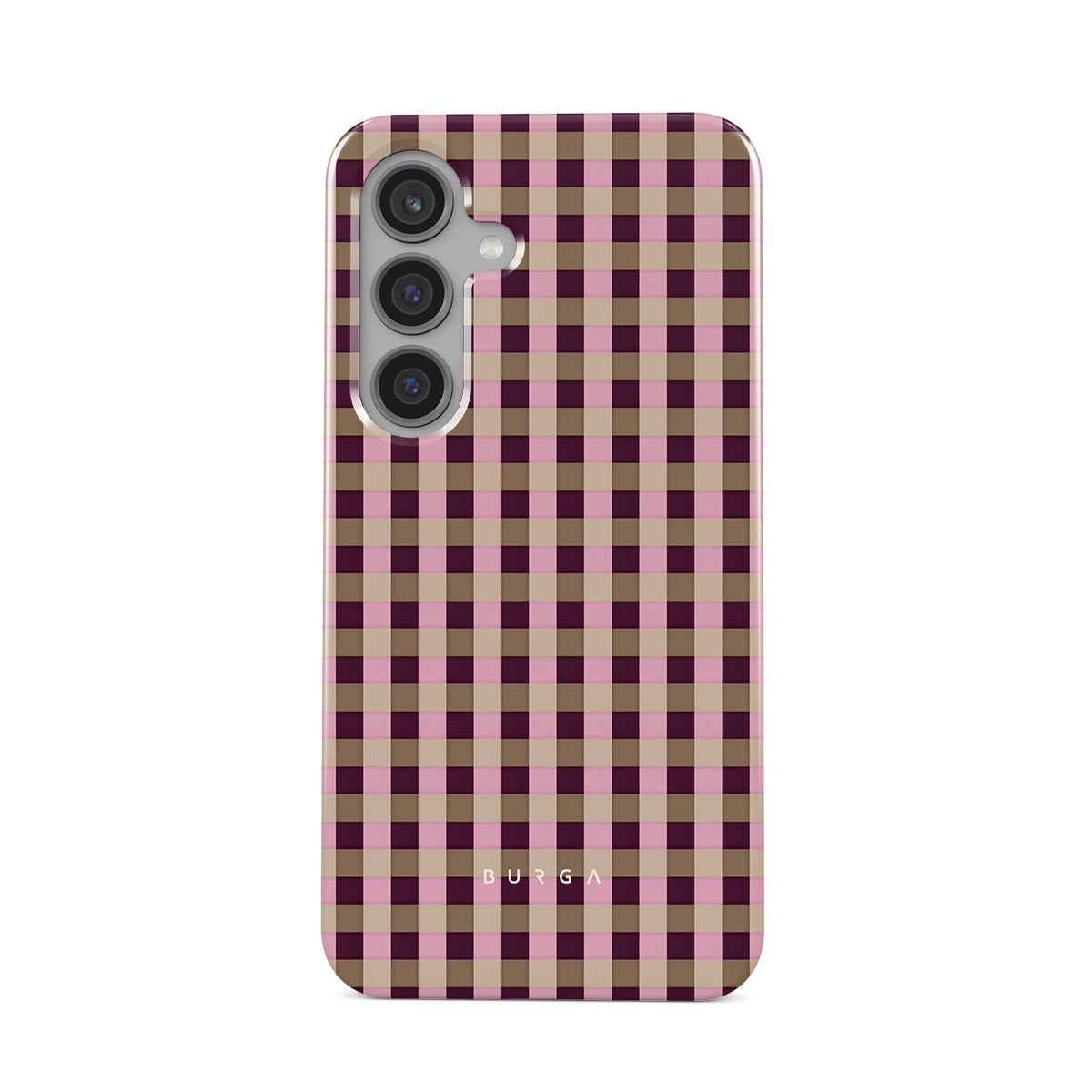 This design features: pink and burgundy plaid pattern, modern checkered style.