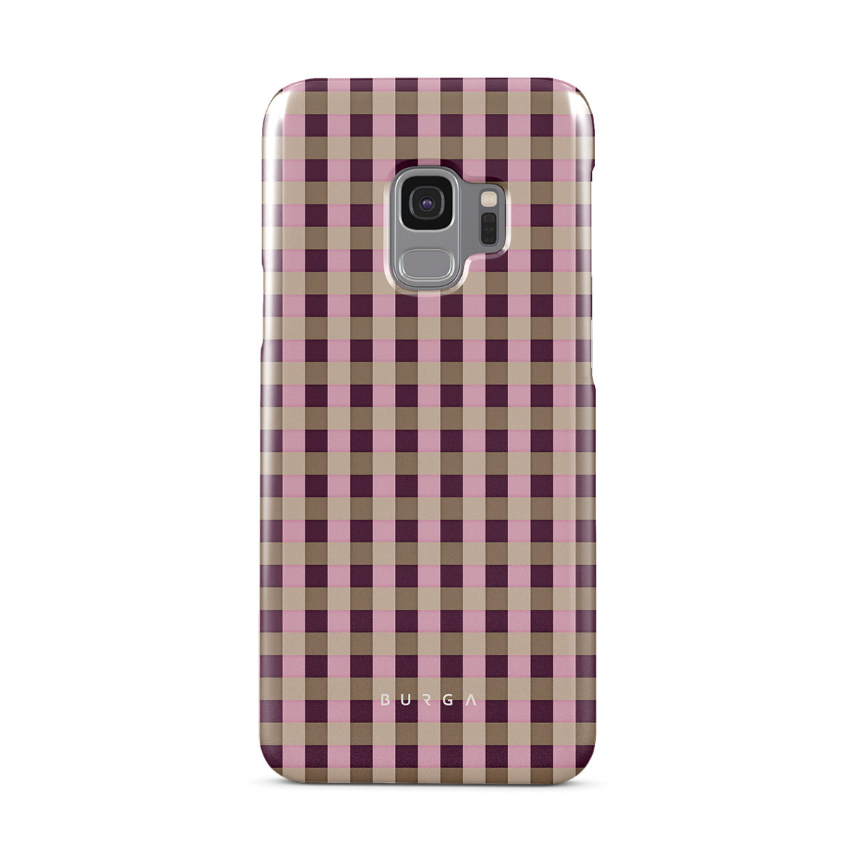 This design features: pink and burgundy plaid pattern, modern checkered style.