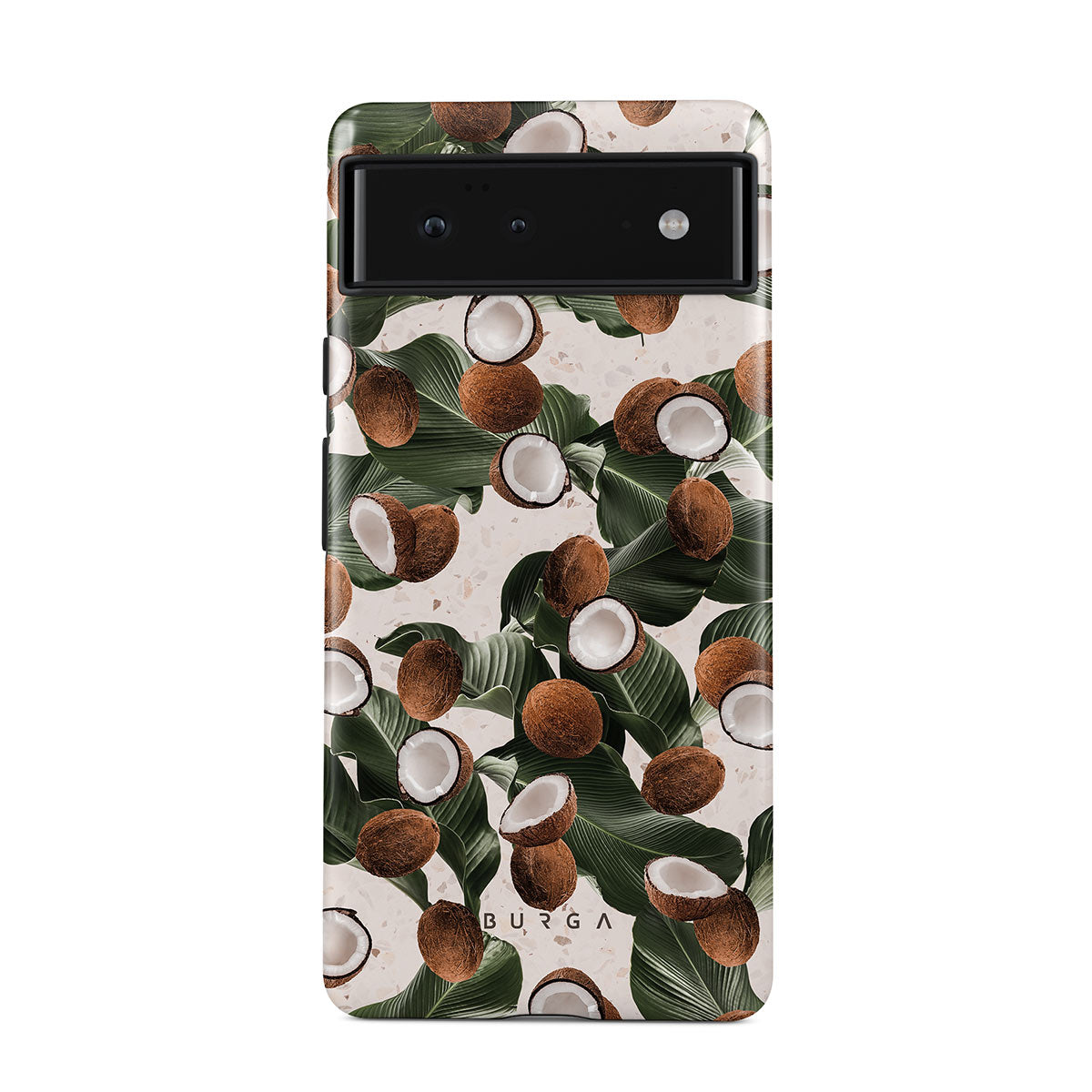 Coconut Crush Google Pixel 6 phone case showcases a soft creme color design with a playful addition of coconuts on top. The unexpected design duo will add a touch of tropical playfulness to your style while offering heavy-duty protection for your cell phone.
