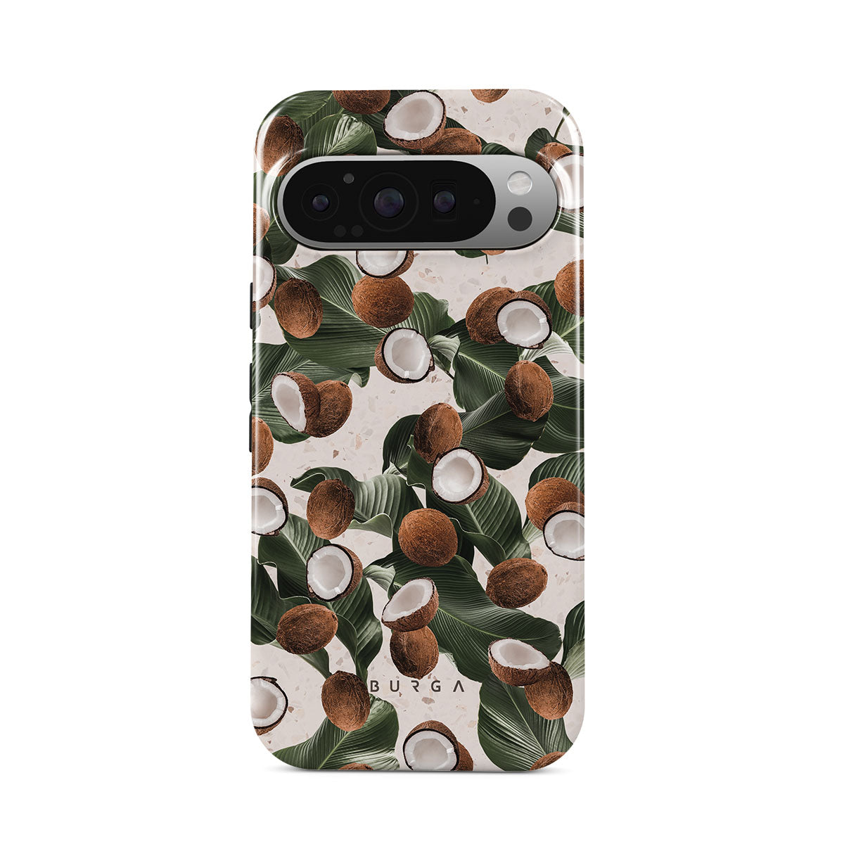 Coconut Crush Google Pixel 9 Pro XL phone case showcases a soft creme color design with a playful addition of coconuts on top. The unexpected design duo will add a touch of tropical playfulness to your style while offering heavy-duty protection for your cell phone.