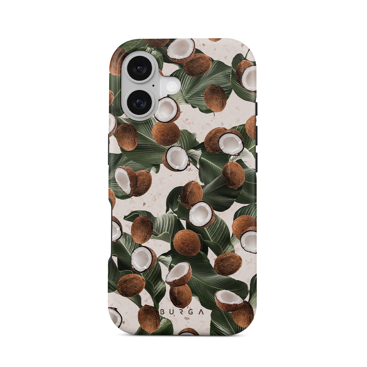 Coconut Crush iPhone 17 phone case showcases a soft creme color design with a playful addition of coconuts on top. The unexpected design duo will add a touch of tropical playfulness to your style while offering heavy-duty protection for your cell phone.