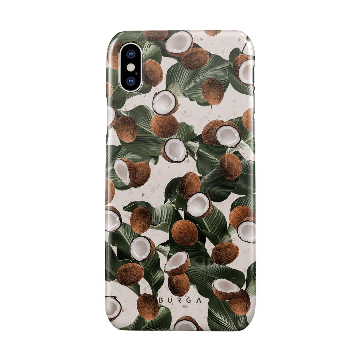 Coconut Crush iPhone X / XS phone case showcases a soft creme color design with a playful addition of coconuts on top. The unexpected design duo will add a touch of tropical playfulness to your style while offering heavy-duty protection for your cell phone.