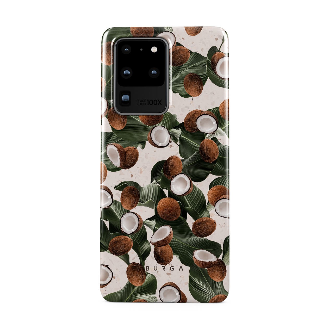 Coconut Crush Samsung Galaxy S20 Ultra 4G / 5G phone case showcases a soft creme color design with a playful addition of coconuts on top. The unexpected design duo will add a touch of tropical playfulness to your style while offering heavy-duty protection for your cell phone.