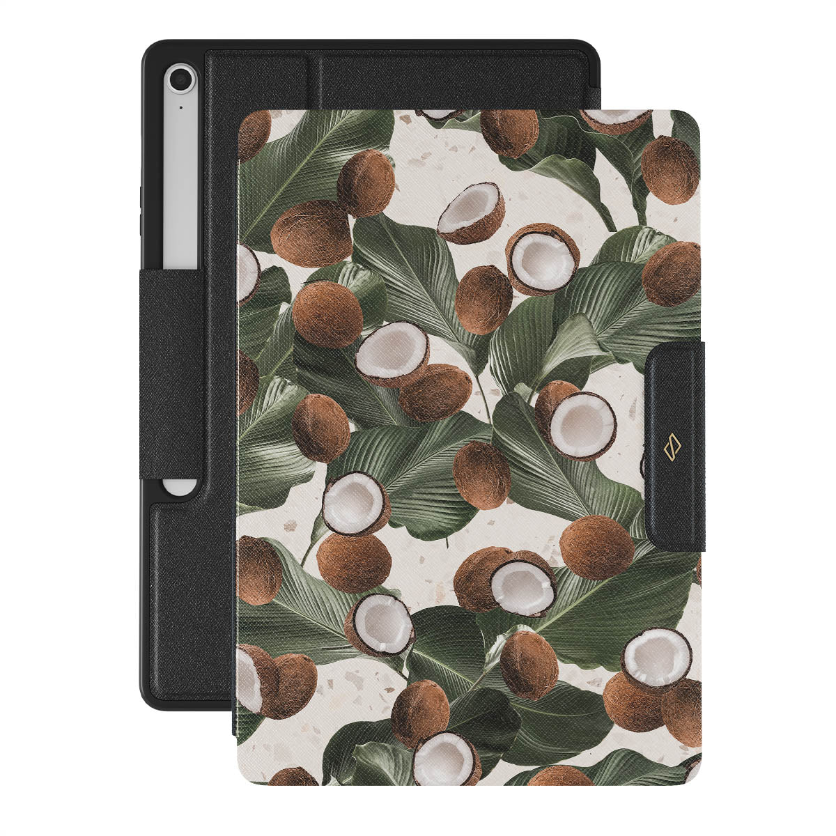 Coconut Crush Samsung Galaxy Tab S10+ FE folio case showcases a soft creme color design with a playful addition of coconuts on top. The unexpected design duo will add a touch of tropical playfulness to your style while offering heavy-duty protection for your cell Galaxy Tab.
