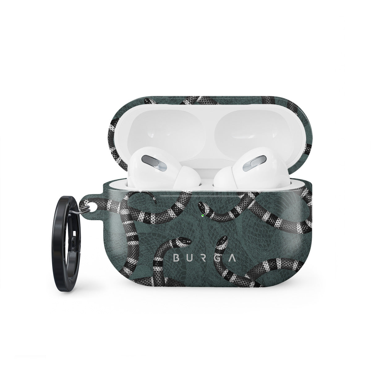 With the fabulous and fierce snake print Apple Airpods Pro 2 case cover, match the deep shades of green to your style and make a gloomy mood match your aesthetics whenever you need a touch of coolness in your life. Our case fits perfectly snug around Apple Airpods Pro 2 . “Like a glove!” one might say. And it won’t disrupt the wireless charging capabilities of the newer model. There’s even an LED light indicator to prove it (don’t worry, wired charging still works, too). When fitted, the BURGA case will protect the delicate Apple Airpods Pro 2 case beneath it from scratches, bumps, and drops while remaining scratch-free itself. Our signature design pattern prints are High Quality, and will never peel or fade away- thanks to our unique printing technology. And finally, a handy carabiner is there to make your life easier and more convenient: just snap it around your keys or belt loop and tackle the day head-on. Your music is right there by your side when you need it.