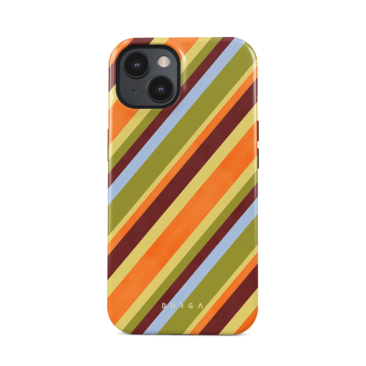 The kind of stripes you’d find on a beach towel left out since noon. Citrus meets spice meets “where’s my other sandal?” The Copacabana iPhone 13 Mini phone case design: it’s carefree with a side of extra.