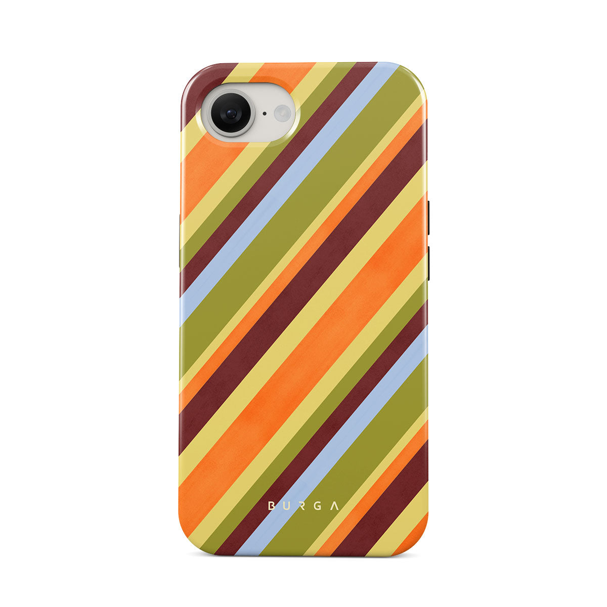 The kind of stripes you’d find on a beach towel left out since noon. Citrus meets spice meets “where’s my other sandal?” The Copacabana iPhone 16e phone case design: it’s carefree with a side of extra.