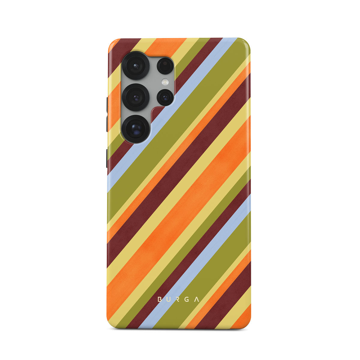 The kind of stripes you’d find on a beach towel left out since noon. Citrus meets spice meets “where’s my other sandal?” The Copacabana Samsung Galaxy S25 Ultra phone case design: it’s carefree with a side of extra.