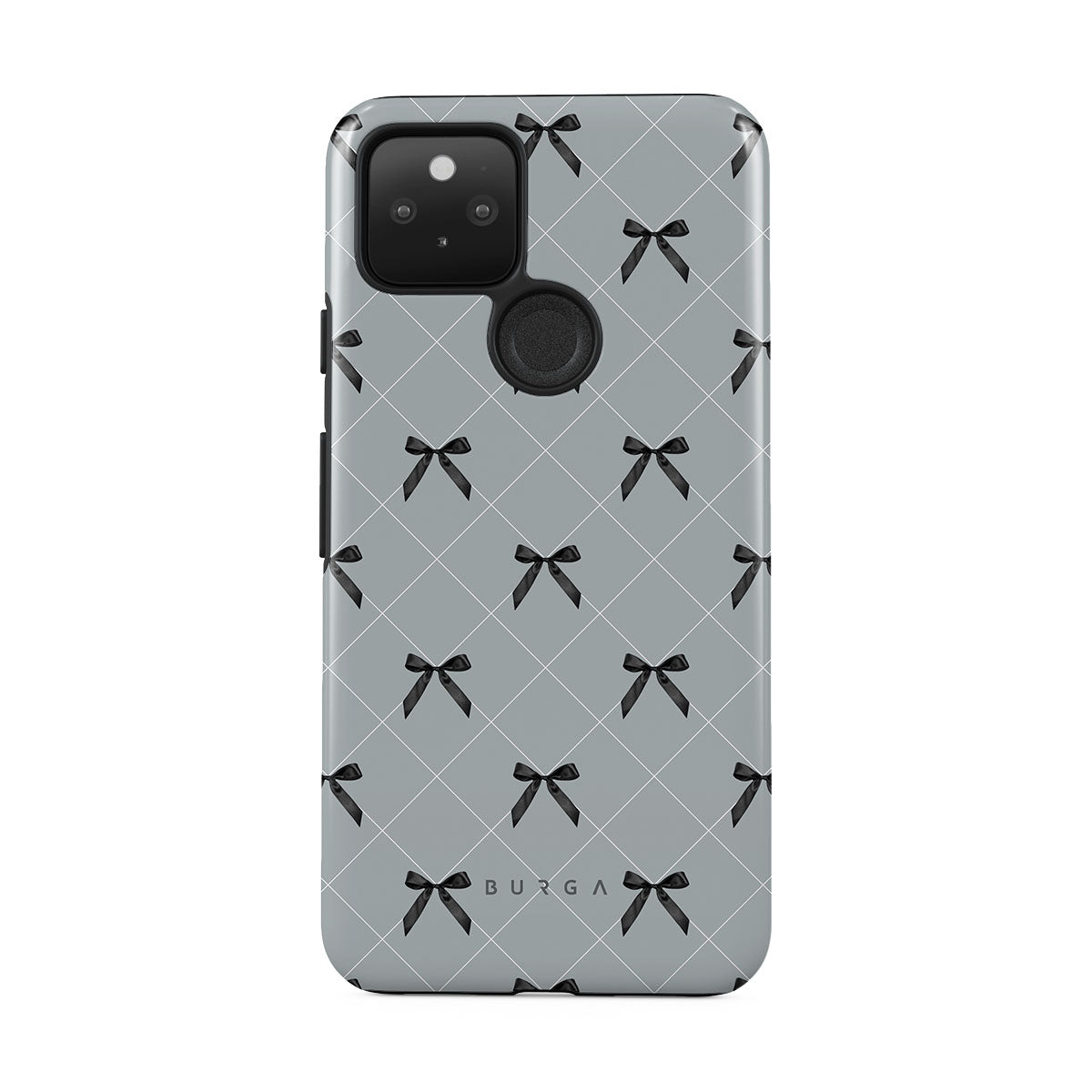 A subtle hint to a world of dance and soft melodies. Crisscrossing bows over a muted gray tone capture the flirtatious essence of the coquette-core aesthetic. Playful and sweet, our Coquette Google Pixel 5 phone case design is perfect for those who find beauty in the details.