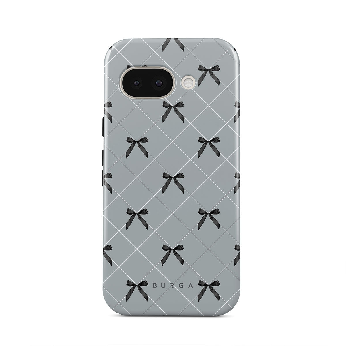 A subtle hint to a world of dance and soft melodies. Crisscrossing bows over a muted gray tone capture the flirtatious essence of the coquette-core aesthetic. Playful and sweet, our Coquette Google Pixel 9a phone case design is perfect for those who find beauty in the details.