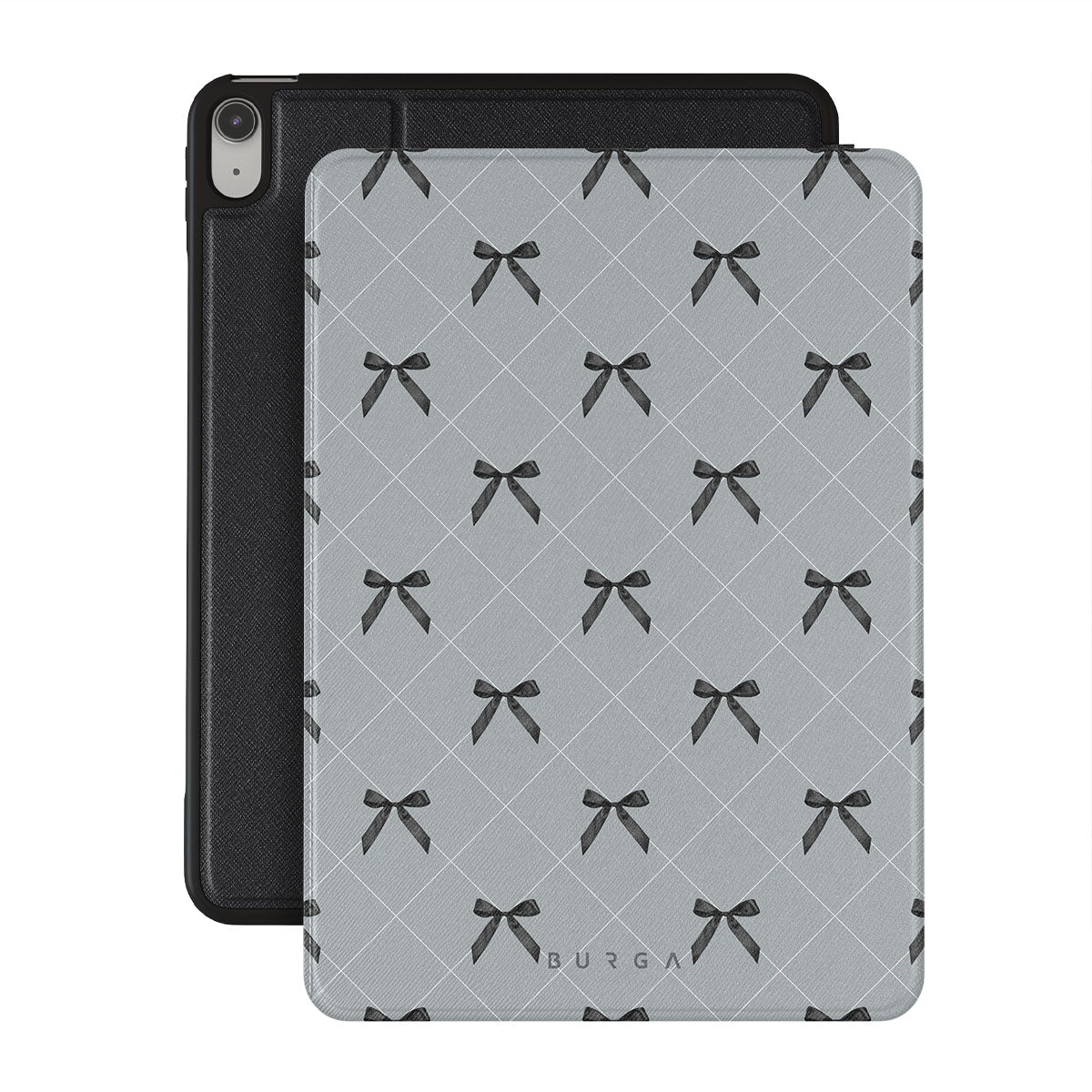 A subtle hint to a world of dance and soft melodies. Crisscrossing bows over a muted gray tone capture the flirtatious essence of the coquette-core aesthetic. Playful and sweet, our Coquette iPad 10.9 (A16/10th Gen) folio case design is perfect for those who find beauty in the details.