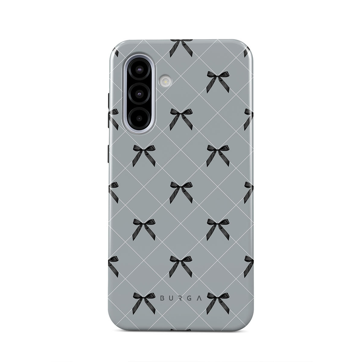 A subtle hint to a world of dance and soft melodies. Crisscrossing bows over a muted gray tone capture the flirtatious essence of the coquette-core aesthetic. Playful and sweet, our Coquette Samsung Galaxy A56 5G phone case design is perfect for those who find beauty in the details.