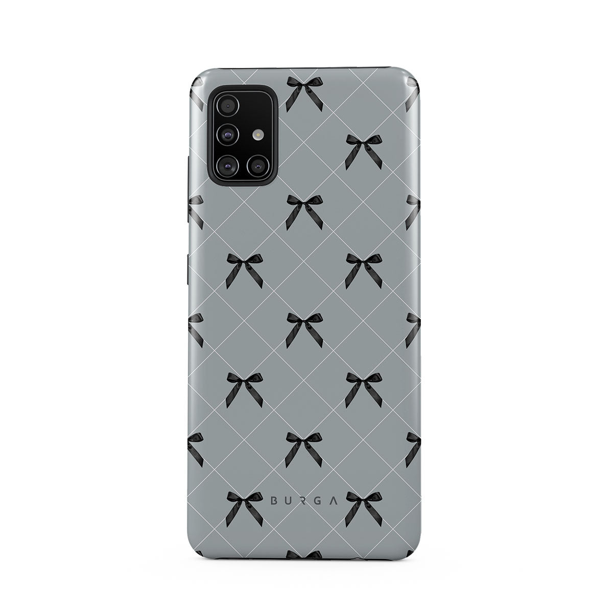 A subtle hint to a world of dance and soft melodies. Crisscrossing bows over a muted gray tone capture the flirtatious essence of the coquette-core aesthetic. Playful and sweet, our Coquette Samsung Galaxy A71 4G phone case design is perfect for those who find beauty in the details.