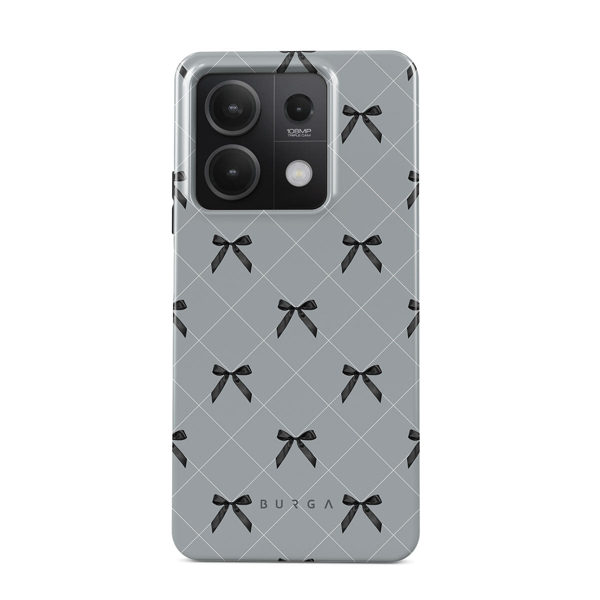 A subtle hint to a world of dance and soft melodies. Crisscrossing bows over a muted gray tone capture the flirtatious essence of the coquette-core aesthetic. Playful and sweet, our Coquette Xiaomi Redmi Note 13 5G phone case design is perfect for those who find beauty in the details.