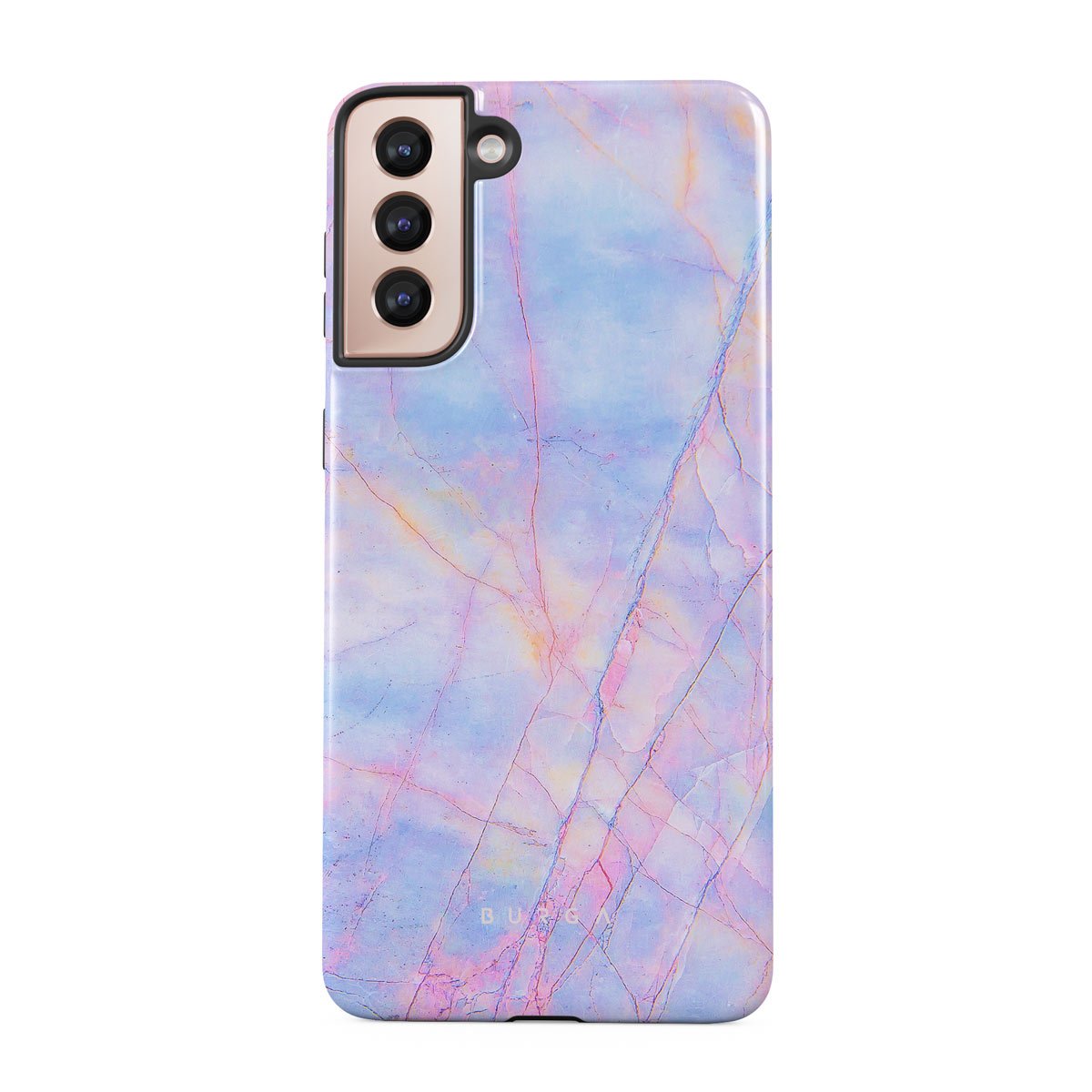 Sweet, fluffy, and dissolves so easily. Take a soft pastel Samsung Galaxy S21 Plus phone case inspired by the cotton candy to remind you of the rides in the Ferris wheel. Do not let the delicate look deceive you, as this case still offers heavy-duty protection for your phone.