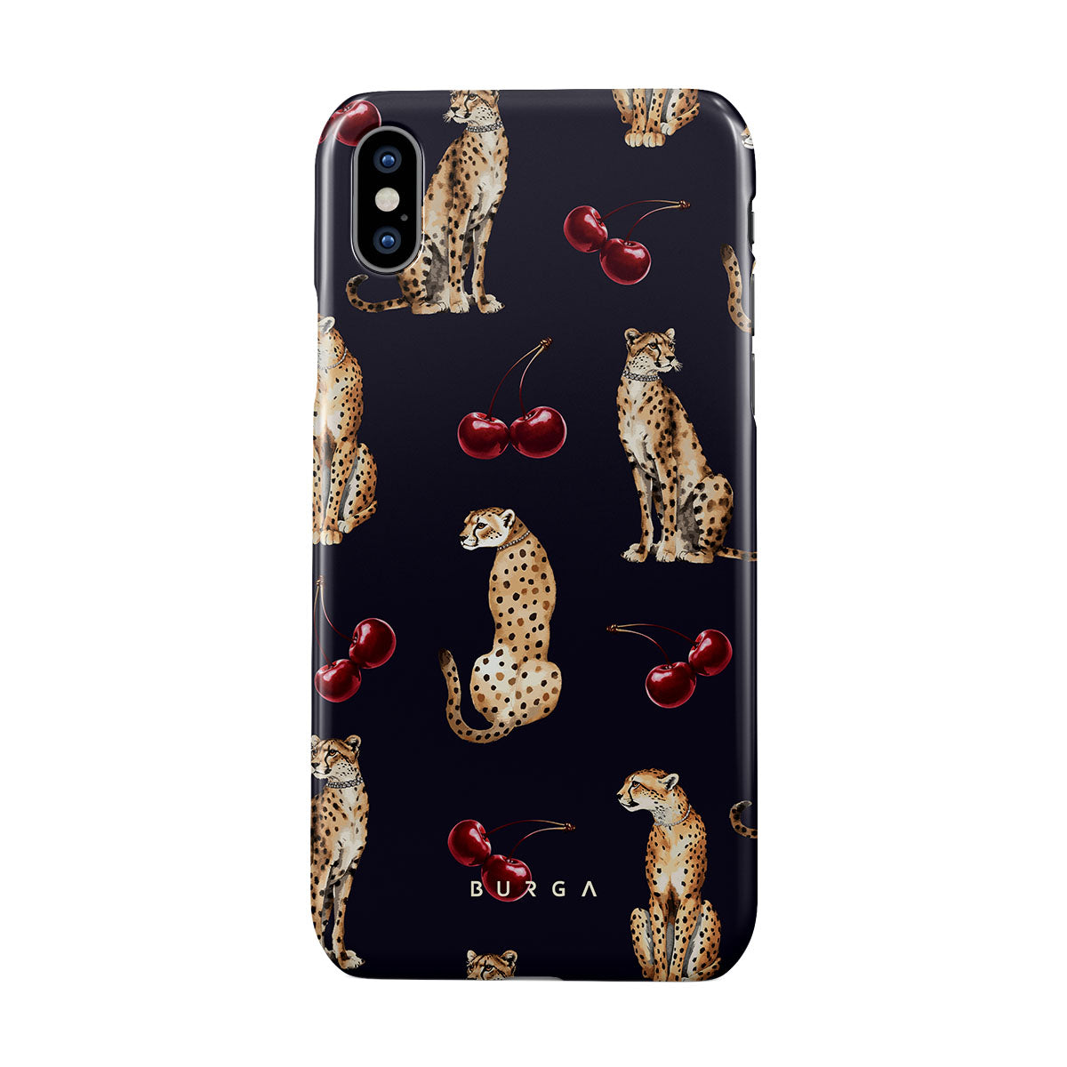 This design features: cheetah patterns, cheetahs, cherries