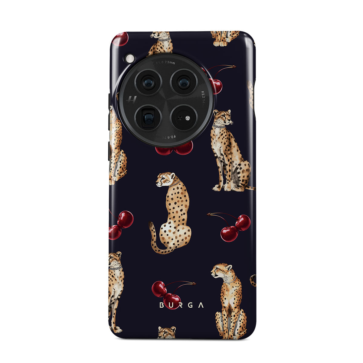 This design features: cheetah patterns, cheetahs, cherries