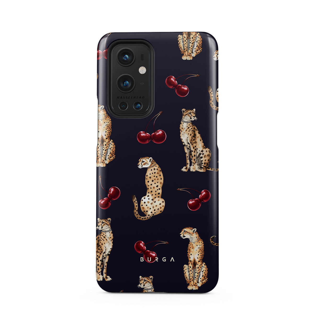 This design features: cheetah patterns, cheetahs, cherries