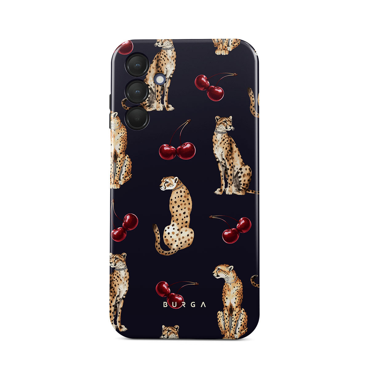 This design features: cheetah patterns, cheetahs, cherries