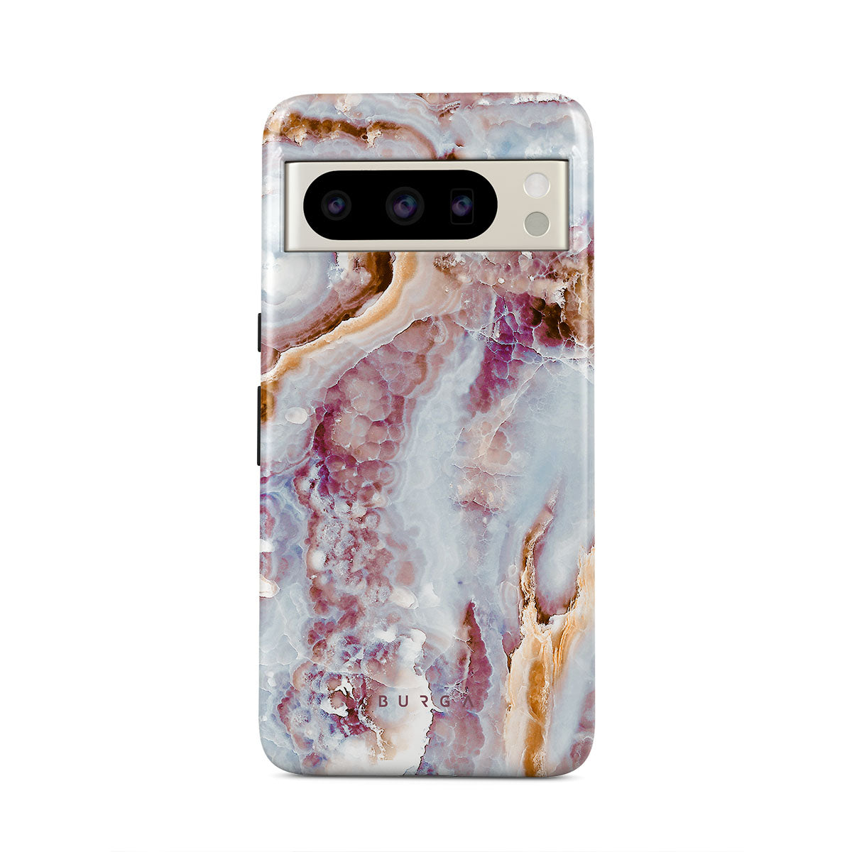 What frost can create on the surfaces is perfectly imperfect. The cute marble pattern of our hard-shell Google Pixel 8 Pro phone case inspired by the frozen leaves adds a splash of color in a dreamy blue background, becoming a beautiful part of anyone's style.