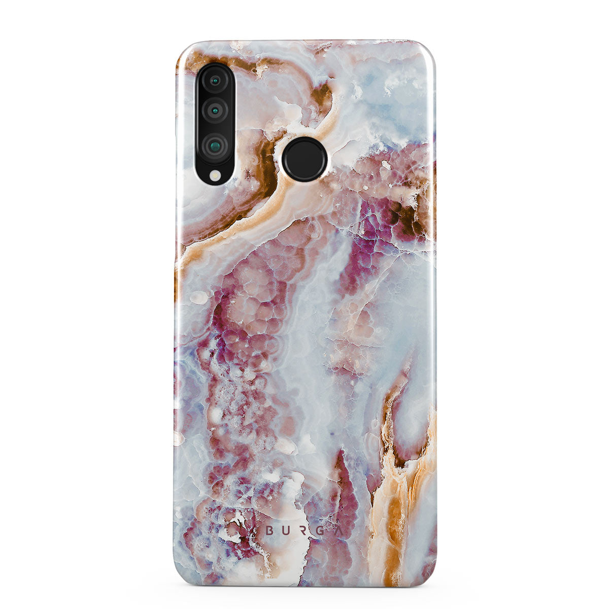 What frost can create on the surfaces is perfectly imperfect. The cute marble pattern of our hard-shell Huawei P30 Lite phone case inspired by the frozen leaves adds a splash of color in a dreamy blue background, becoming a beautiful part of anyone's style.