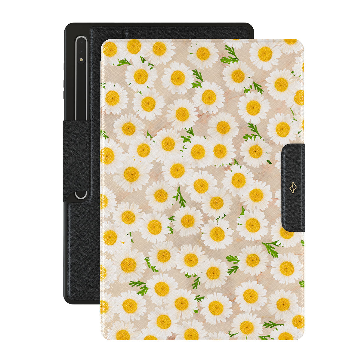 The smell of the Daisies surrounding you, memories of "Loves me, loves me not," and the smile it gives you. Feel free to look, to smell. Take this blissful moment with your daisy inspired Samsung Galaxy Tab S10 Ultra folio case whenever you need a little relaxation or when you want to simply enjoy the moment while protecting your Galaxy Tab.