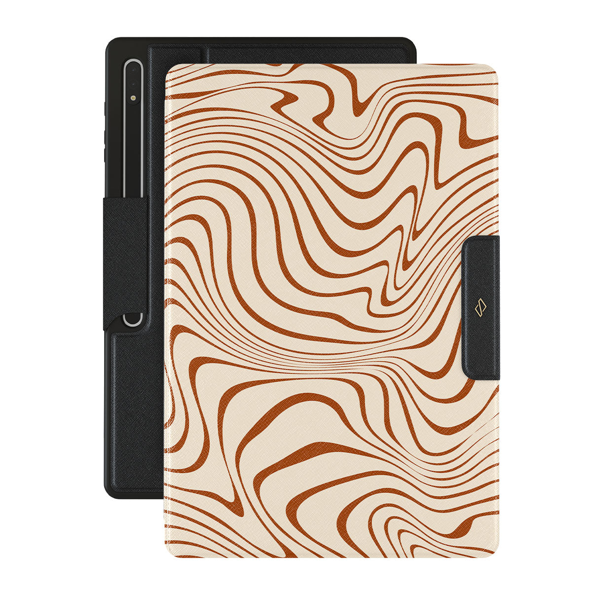 The title of our Déjà vu Samsung Galaxy Tab S10 Ultra folio case design is no accident! This design's feeling can only be described as the Déjà vu itself. The crème color meets the warm brown in a mesmerizing waves pattern that will surely add a touch of old times charm to your device.