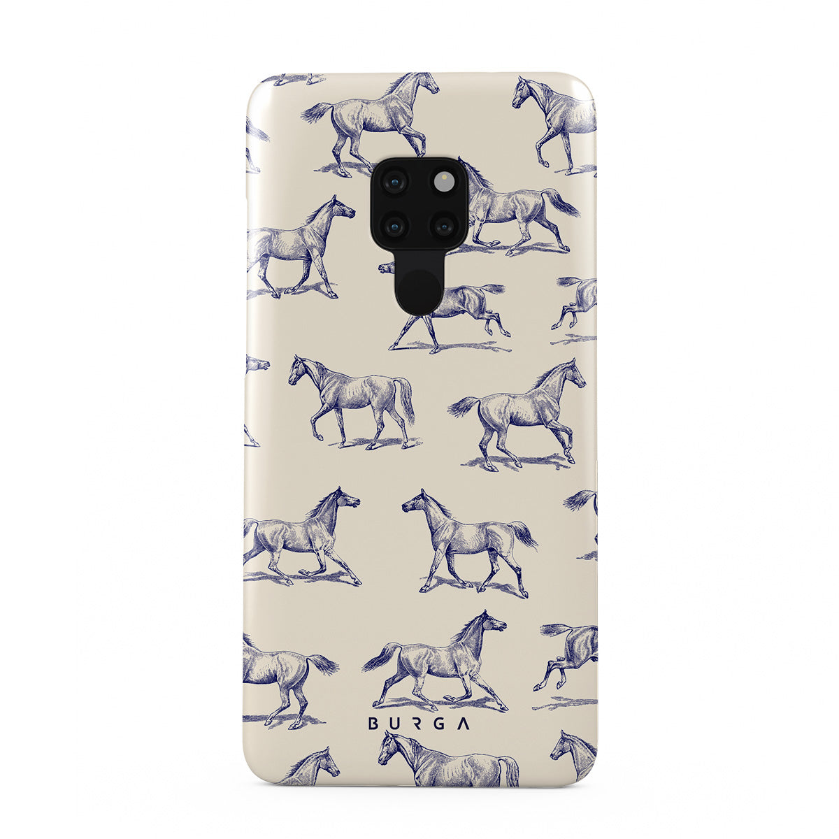 Introducing our Derby Race Huawei Mate 20 phone case designa portrait of elegance in motion on a soft nude canvas. Engraved in delicate blue contours, galloping horses dance upon the wind, frozen in an exquisite moment of grace.