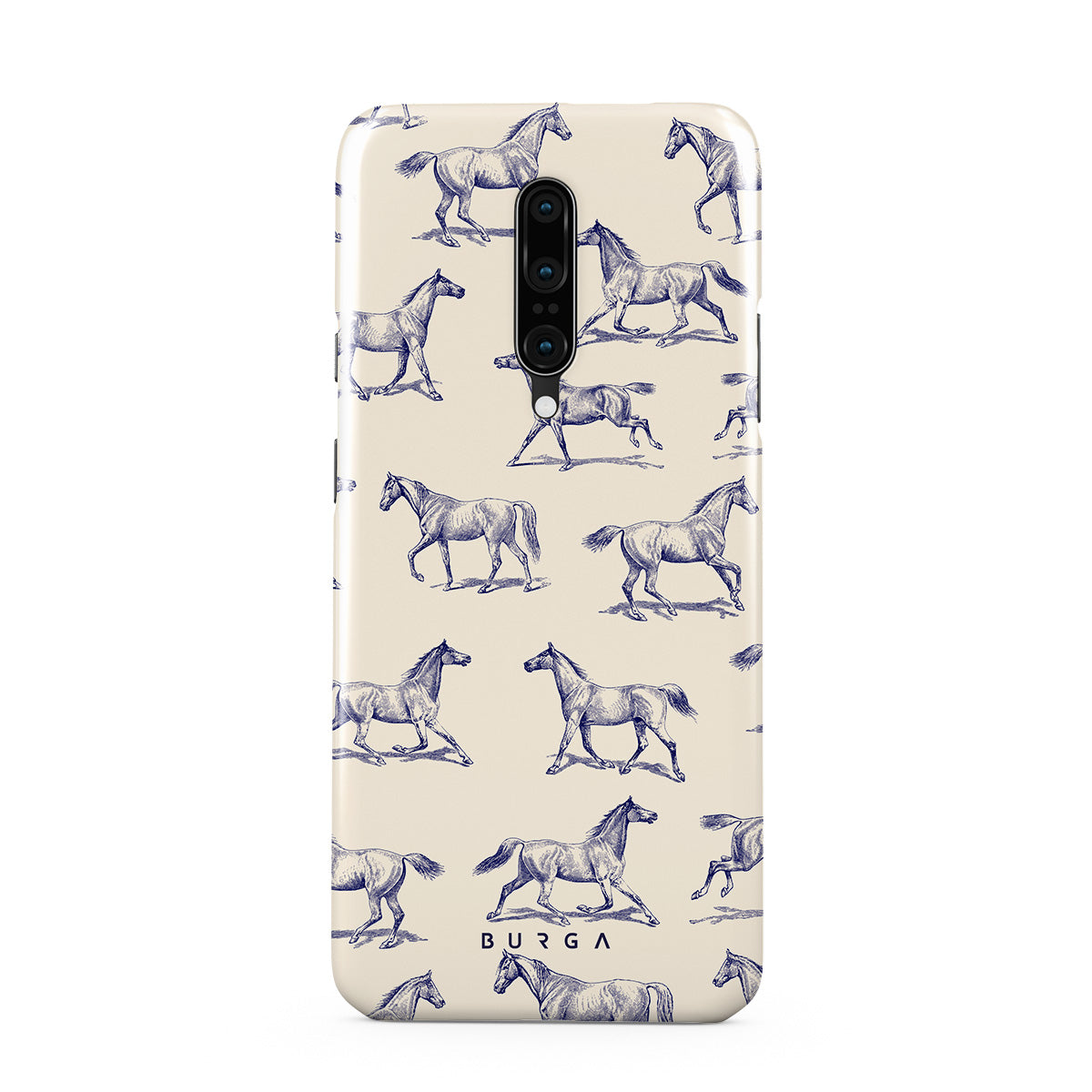 Introducing our Derby Race OnePlus 7 Pro / 7T Pro phone case designa portrait of elegance in motion on a soft nude canvas. Engraved in delicate blue contours, galloping horses dance upon the wind, frozen in an exquisite moment of grace.
