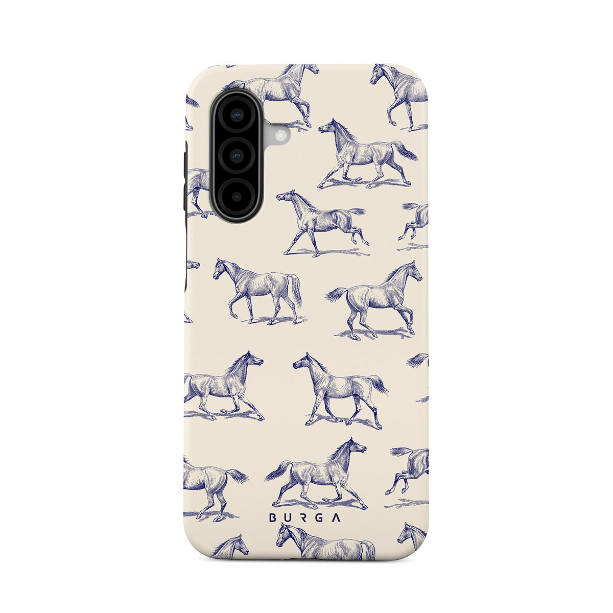 Introducing our Derby Race Samsung Galaxy A17 phone case designa portrait of elegance in motion on a soft nude canvas. Engraved in delicate blue contours, galloping horses dance upon the wind, frozen in an exquisite moment of grace.