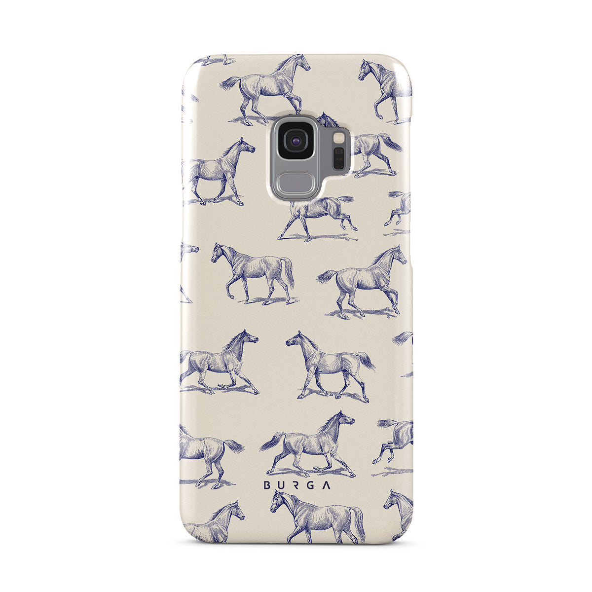 Introducing our Derby Race Samsung Galaxy S9 phone case designa portrait of elegance in motion on a soft nude canvas. Engraved in delicate blue contours, galloping horses dance upon the wind, frozen in an exquisite moment of grace.
