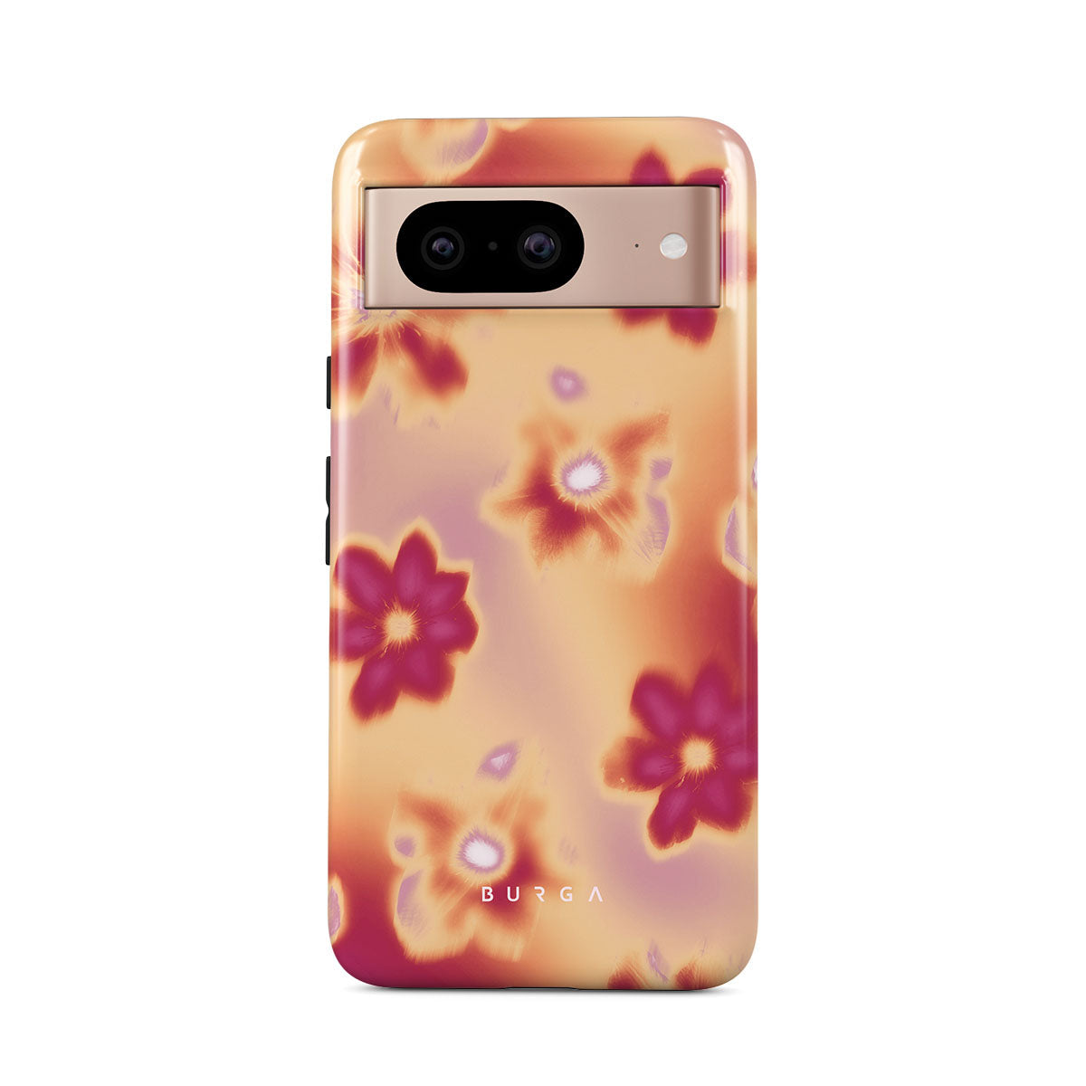 Get lost in the allure of our Divine Google Pixel 8 phone case design. Picture blossoms bathed in fiery hues of pink and orange, each seemingly charged with life's raw energy. Set against a canvas that radiates power and warmth, these flowers offer more than just beauty; they resonate with the essence that binds us all.