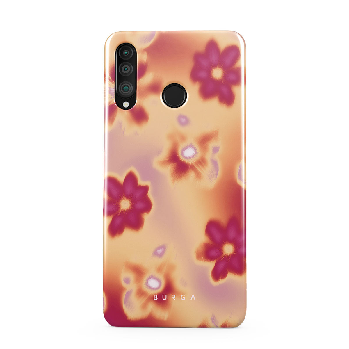 Get lost in the allure of our Divine Huawei P30 Lite phone case design. Picture blossoms bathed in fiery hues of pink and orange, each seemingly charged with life's raw energy. Set against a canvas that radiates power and warmth, these flowers offer more than just beauty; they resonate with the essence that binds us all.