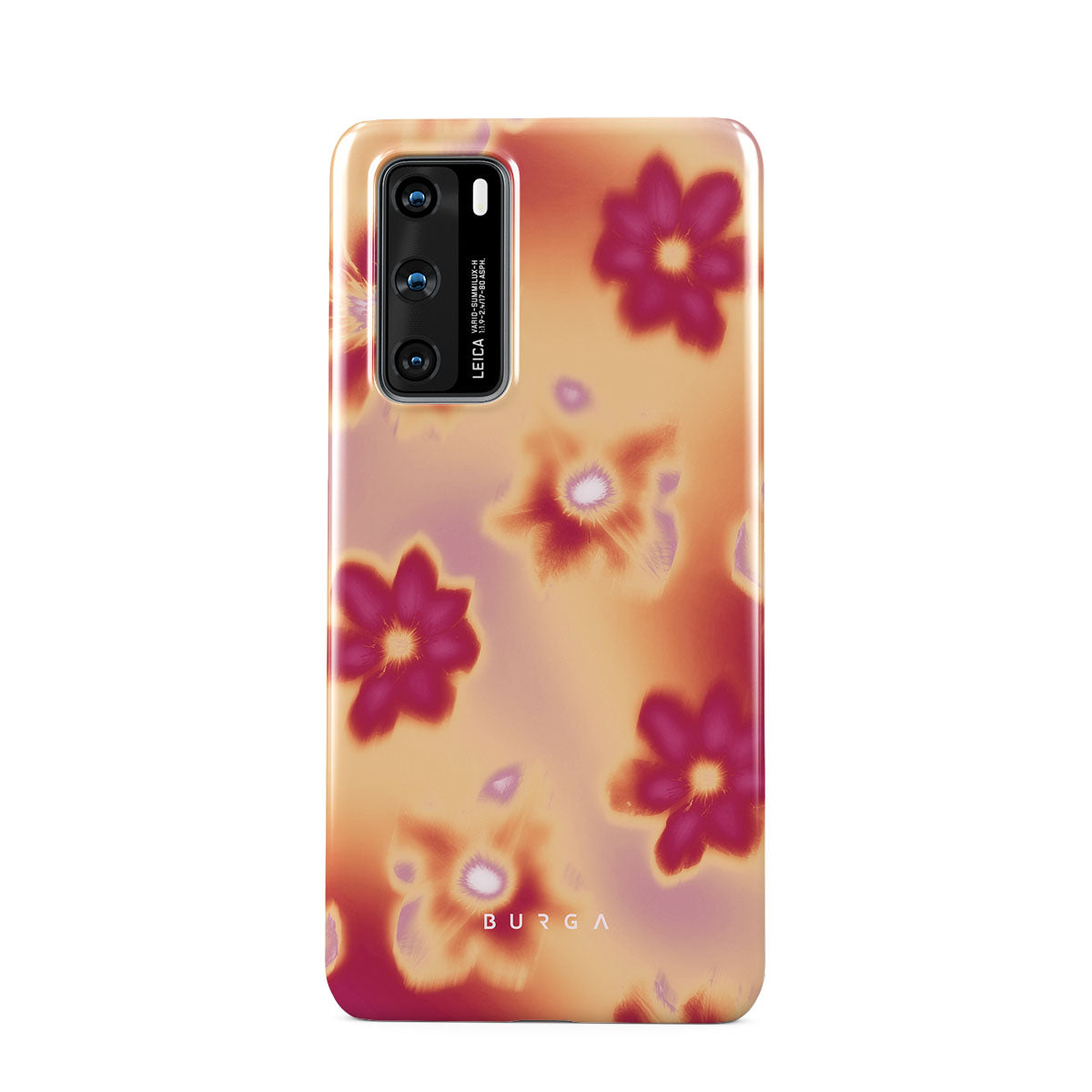 Get lost in the allure of our Divine Huawei P40 phone case design. Picture blossoms bathed in fiery hues of pink and orange, each seemingly charged with life's raw energy. Set against a canvas that radiates power and warmth, these flowers offer more than just beauty; they resonate with the essence that binds us all.