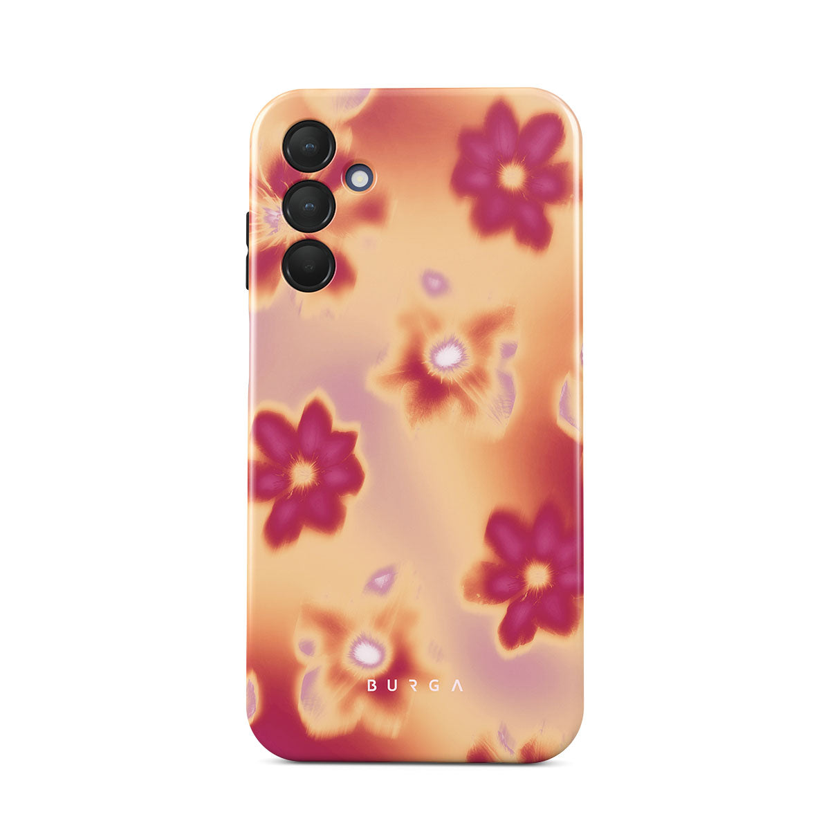 Get lost in the allure of our Divine Samsung Galaxy A15 4G / 5G phone case design. Picture blossoms bathed in fiery hues of pink and orange, each seemingly charged with life's raw energy. Set against a canvas that radiates power and warmth, these flowers offer more than just beauty; they resonate with the essence that binds us all.