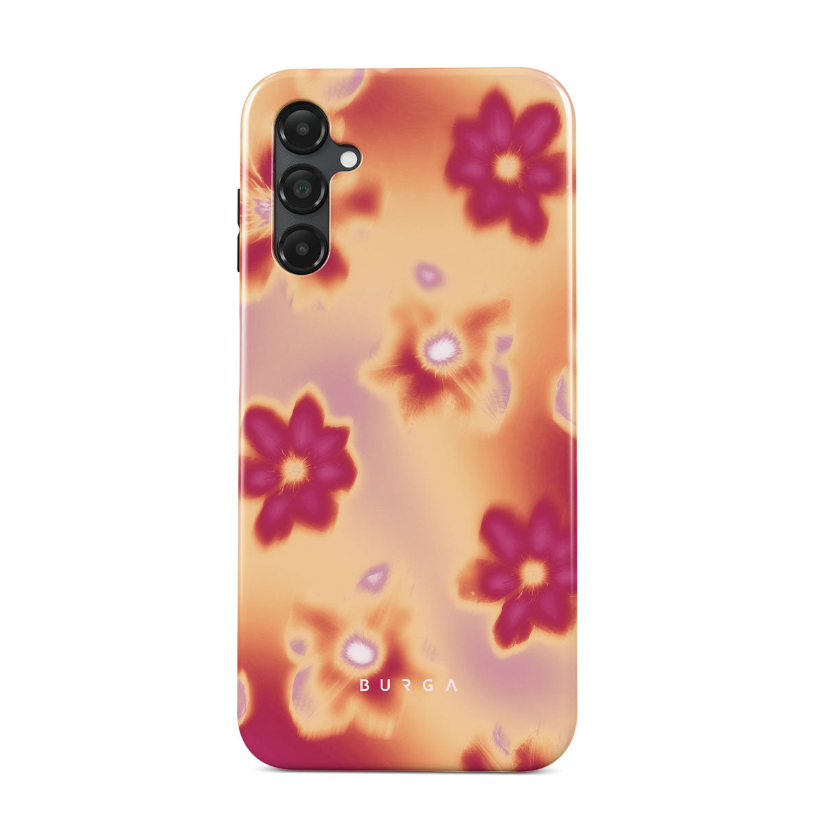 Get lost in the allure of our Divine Samsung Galaxy A25 phone case design. Picture blossoms bathed in fiery hues of pink and orange, each seemingly charged with life's raw energy. Set against a canvas that radiates power and warmth, these flowers offer more than just beauty; they resonate with the essence that binds us all.