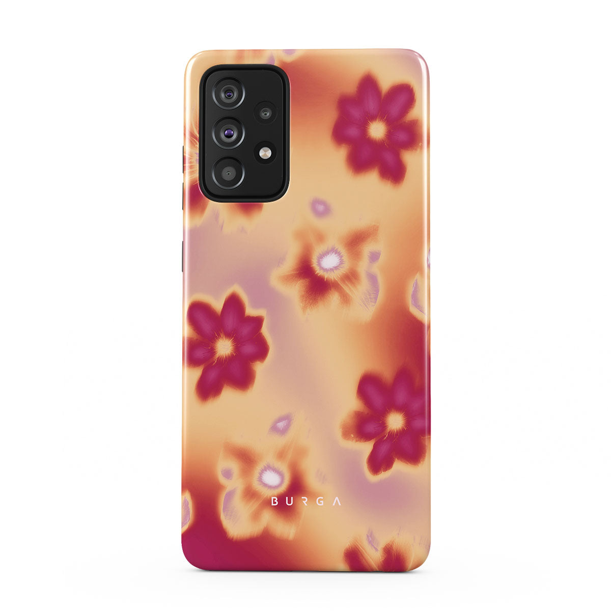 Get lost in the allure of our Divine Samsung Galaxy A52 / A52S 4G / 5G phone case design. Picture blossoms bathed in fiery hues of pink and orange, each seemingly charged with life's raw energy. Set against a canvas that radiates power and warmth, these flowers offer more than just beauty; they resonate with the essence that binds us all.