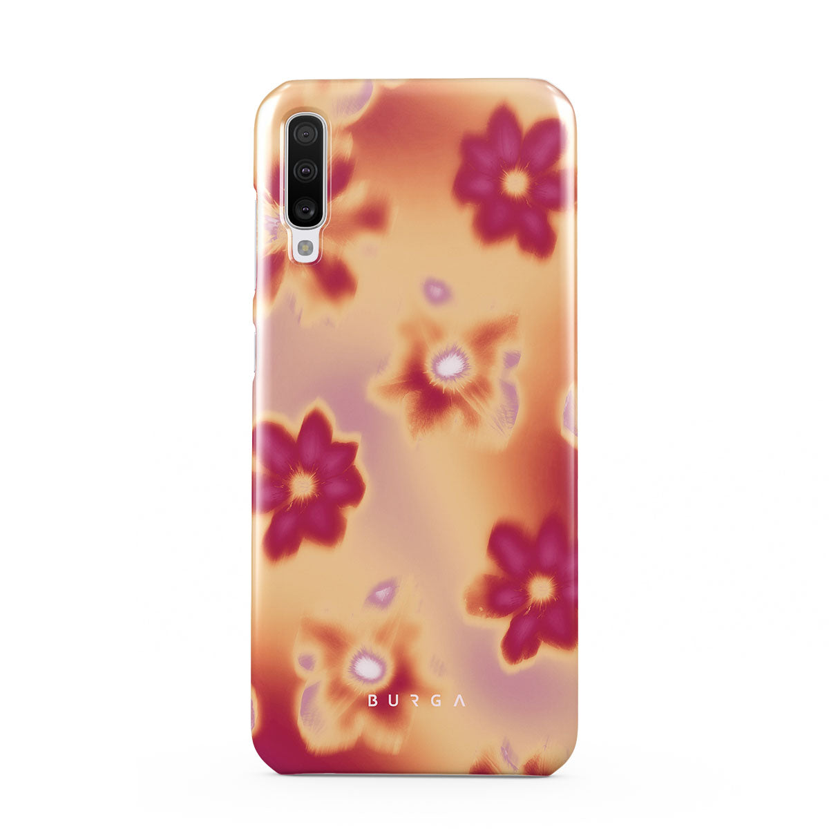 Get lost in the allure of our Divine Samsung Galaxy A70 phone case design. Picture blossoms bathed in fiery hues of pink and orange, each seemingly charged with life's raw energy. Set against a canvas that radiates power and warmth, these flowers offer more than just beauty; they resonate with the essence that binds us all.