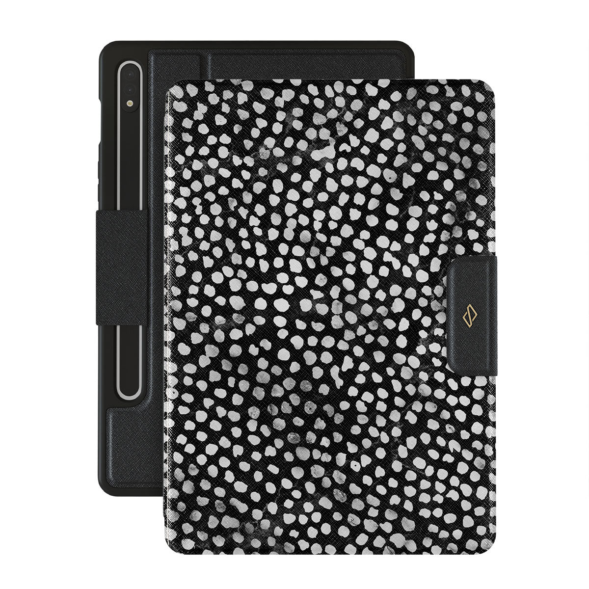 Dark, endless with flickering stars. Keep a part of the night sky in your pocket with Samsung Galaxy Tab S9 FE folio case cover inspired by the sky above us. The classy dotted pattern found on the case is a must in every accessory lover's collection.