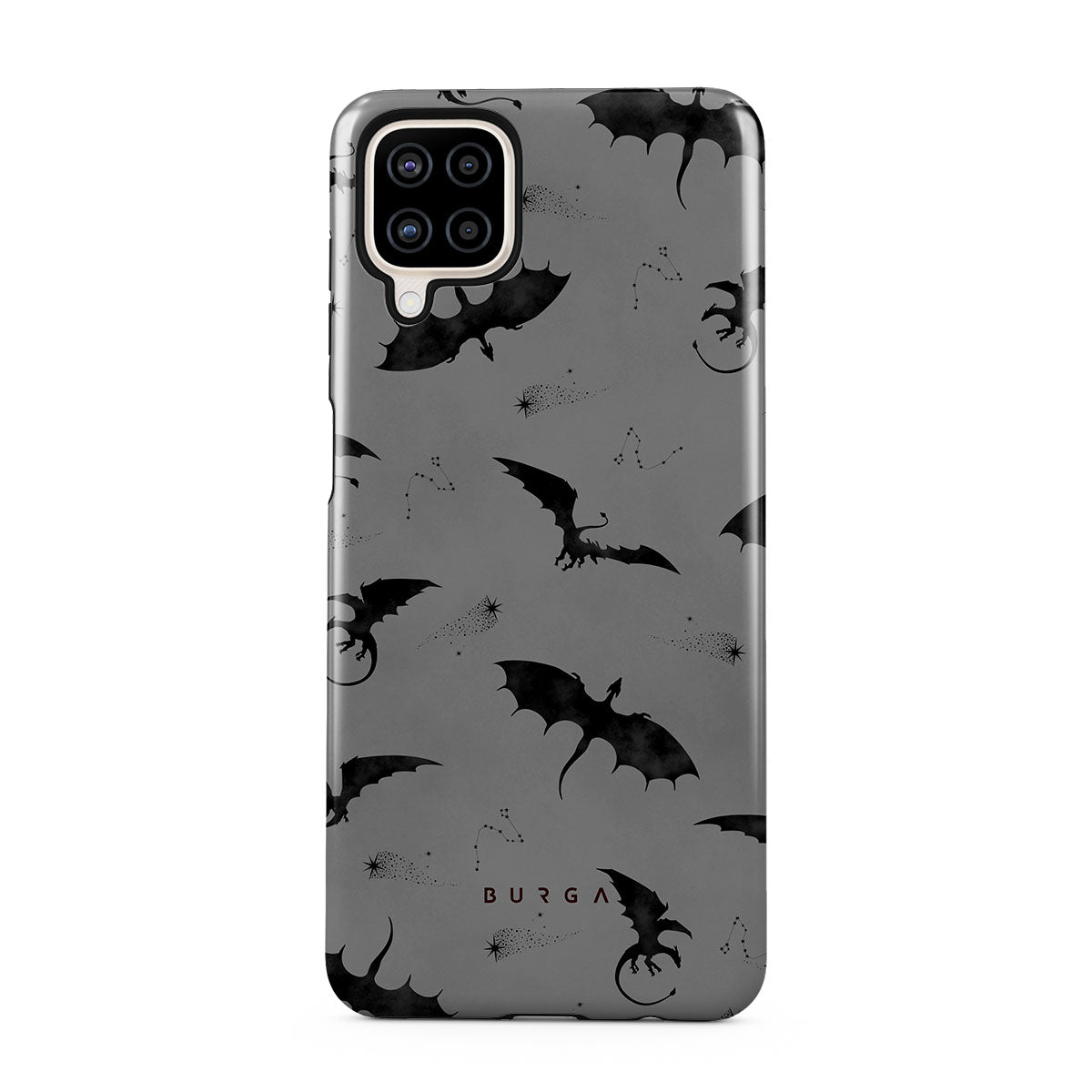 Under the dusk's veil, Draco takes flight, its bats whispering secrets to those who dare. Bold yet elusive, this Samsung Galaxy A12 4G phone case design invites you to embrace the unknown and let the wings of mystery guide your night—where will they take you?