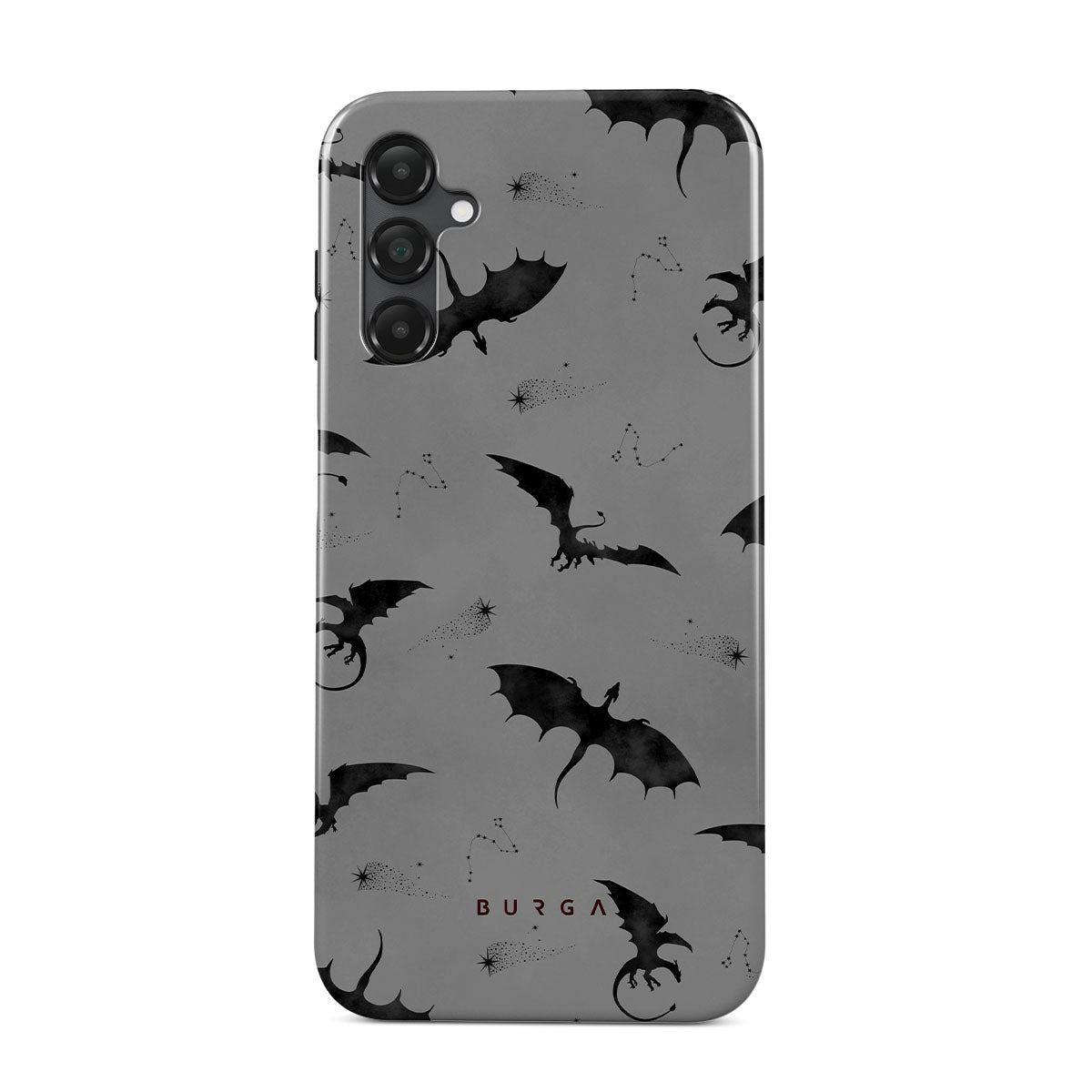 Under the dusk's veil, Draco takes flight, its bats whispering secrets to those who dare. Bold yet elusive, this Samsung Galaxy A14 5G phone case design invites you to embrace the unknown and let the wings of mystery guide your night—where will they take you?