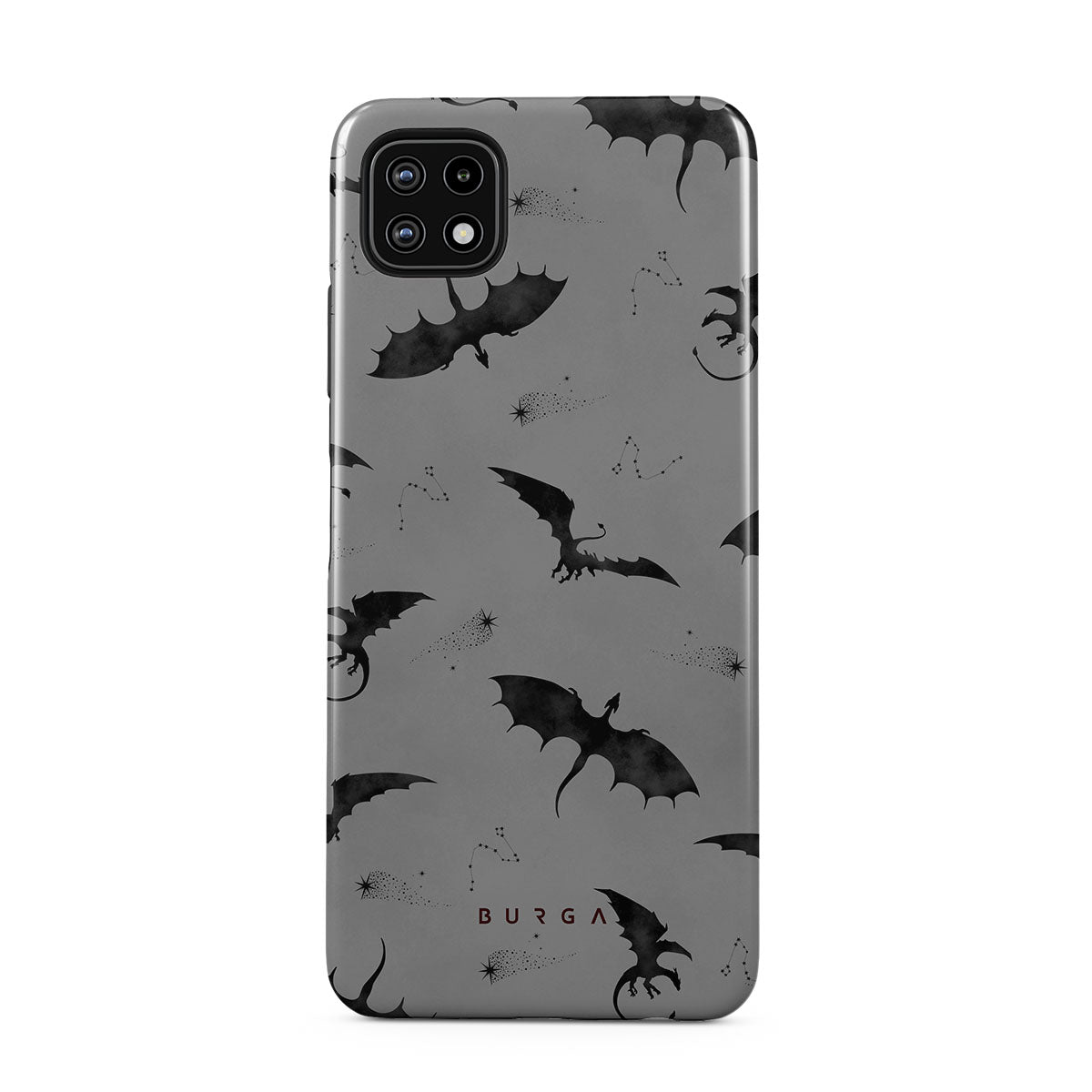 Under the dusk's veil, Draco takes flight, its bats whispering secrets to those who dare. Bold yet elusive, this Samsung Galaxy A22 5G phone case design invites you to embrace the unknown and let the wings of mystery guide your night—where will they take you?