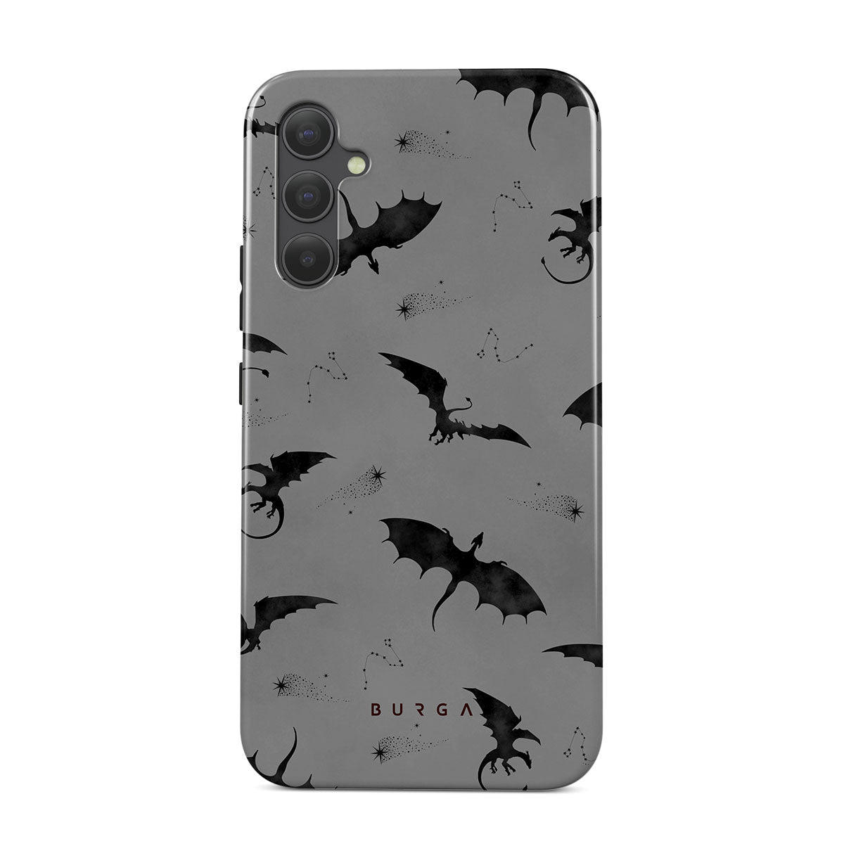 Under the dusk's veil, Draco takes flight, its bats whispering secrets to those who dare. Bold yet elusive, this Samsung Galaxy A34 phone case design invites you to embrace the unknown and let the wings of mystery guide your night—where will they take you?